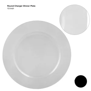 10.7″ Scalloped Black / Silver Dinner Plates with clear base / 10 Pk
